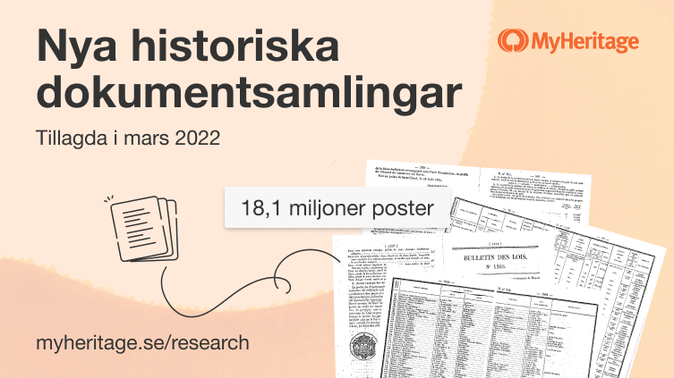Vi hoppas att dessa värdefulla samlingar erbjuder nya vägar för din släktforskning. Att söka i dessa samlingar på MyHeritage är gratis. För att se dessa register eller spara poster i ditt släktträd behöver du ett data- eller komplett-abonnemang.