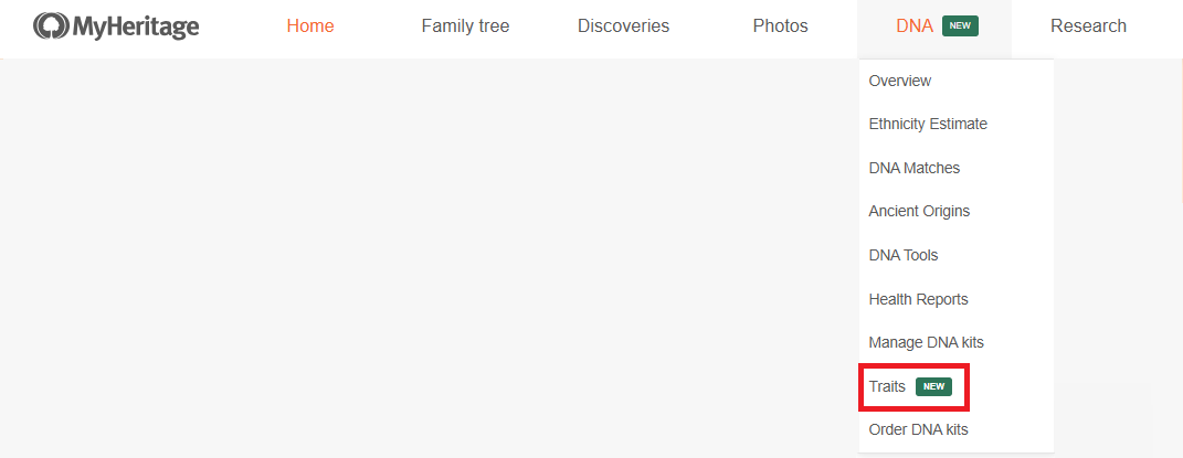 Om du har DNA-resultat på MyHeritage, få tillgång till Traits från DNA-menyn och följ stegen som beskrivs ovan för att få Trait-rapporter. Om du nyligen har köpt ett MyHeritage DNA-kit kan du köpa Traits-tillägget när du har aktiverat ditt kit.